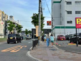 正解は、、、〒577-0066 大阪府東大阪市高井田本通7-9付近、国道308号・中央大通り「高井田中5丁目交差点」を東に向かって撮影し…