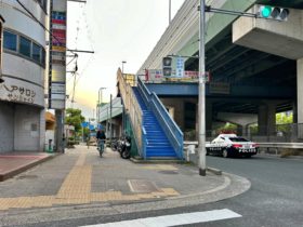 正解は、、、〒577-0034 大阪府東大阪市御厨南3-1付近、正面に見える大きな建造物は、八戸ノ里グランドマンションB棟。八戸ノ里駅か…
