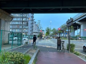 正解は、、、〒578-0947 大阪府東大阪市西岩田3-5付近、近鉄奈良線の高架下から北へ向かって撮影しました。右側を走るのは府道2号…