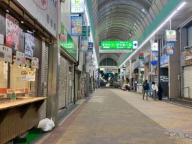 正解は、、、〒579-8046 大阪府東大阪市昭和町1-7付近、瓢箪山駅北側の「サンロード瓢箪山」商店街。お好み焼きやたこ焼きの「じゅ…