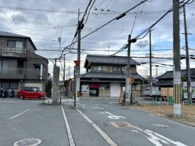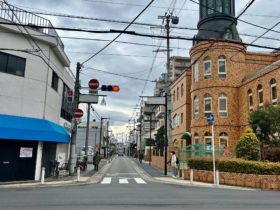 正解は、、、〒578-0974 大阪府東大阪市鴻池元町10付近、鴻池交差点から北へ向かって撮影しました。右手の特徴ある建物は鴻池学園幼稚…