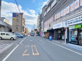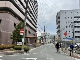 正解は、、、〒577-0036 大阪府東大阪市御厨栄町1-4付近、河内小阪駅の南側。「ユー・コミュニティホテル」を左手に東へ向かって撮影…