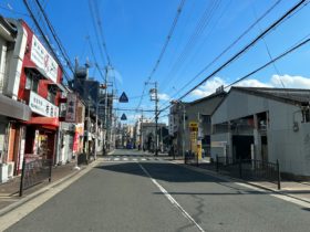 正解は、、、〒579-8046 大阪府東大阪市昭和町3-10付近、瓢箪山駅の北側から西へ向かって撮影しました。右手側は三菱UFJ銀行…