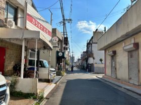 正解は、、、〒579-8027 大阪府東大阪市東山町4-8付近。大阪シティ信用金庫枚岡支店の南側路地を旧国道170号線に向かって撮影…