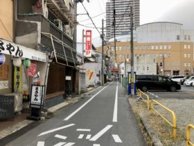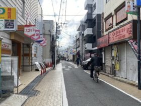 正解は、、、〒577-0001 大阪府東大阪市徳庵本町2付近、徳庵商連会。パチンコ店「はりまや徳庵駅前店」を左手に南西に向かって撮影し…
