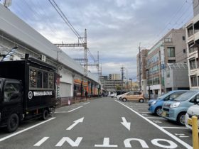 正解は、、、〒577-0801 大阪府東大阪市小阪2-13付近、ホットサンド専門店「OHANABATAKE」を左手に東へ向かって撮影し…