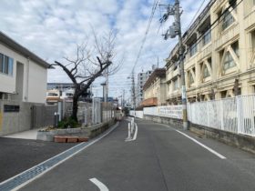 正解は、、、〒579-8003 大阪府東大阪市日下町6-2付近、東大阪市立孔舎衙こども園(左)と東大阪市立孔舎衙小学校(右)の間を西へ…