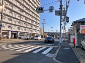 正解は、、、〒577-8799 大阪府東大阪市永和2-3付近、布施郵便局の西側から北に向かって撮影しました。前方には近鉄奈良線が。左…