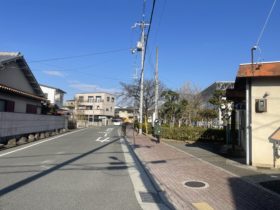 正解は、、、〒577-0042 大阪府東大阪市西堤1−11付近、小阪稲田線沿い西堤神社前付近から北に向かって撮影しました。もうすぐそこに…