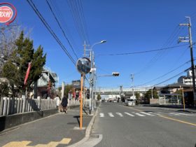 正解は、、、〒578-0923 大阪府東大阪市松原南1-1付近、河内警察署吉田交番の前から北に向かって撮影しました。右奥には花園ラグビー…