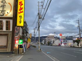 正解は、、、〒578-0913 大阪府東大阪市中野2-2付近、八尾枚方線を北東に向かって撮影しました。「とりどーる」の大きな看板が目…