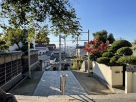 正解は、、、〒579-8033 大阪府東大阪市出雲井町2付近、枚岡神社二の鳥居を背に西へ向かって撮影しました。鳥居をくぐり坂を上ると枚…