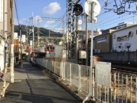 正解は、、、〒579-8045 東大阪市本町15付近。近鉄瓢箪山駅踏切北から東に向かって撮影しました。ゆっくり左(北)にカーブするのが…