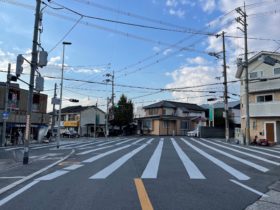 正解は、、、〒579-8003 大阪府東大阪市日下町4-3付近から東へ向かって撮影しました。正面の信号は旧国道170号線(旧大阪外環…