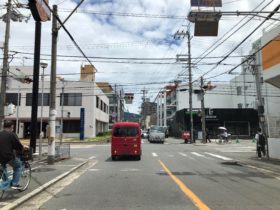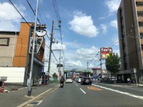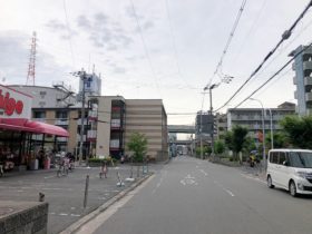 正解は、、、〒577-0847 大阪府東大阪市岸田堂南町4付近の府道173号線、勝山通りの東端から東に向かって撮影しました。歩道橋が架…