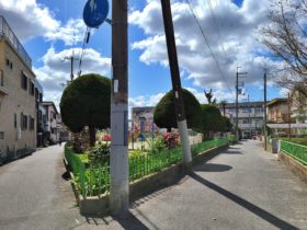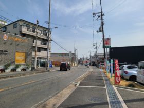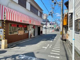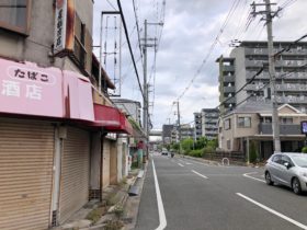 正解は、、、〒577-0007 大阪府東大阪市稲田本町3-1付近、たこ焼き店「のぼりだこ」を左手に北東へ向かって撮影しました。このまま…