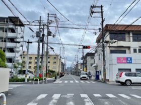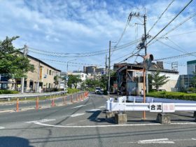 正解は、、、〒579-8035 大阪府東大阪市鳥居町3-3付近、東大阪市消防局東消防署前から旧外環状線を南に向かって撮影しました。