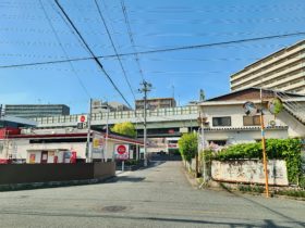 正解は、、、〒579-8013 大阪府東大阪市西石切町3付近、新石切駅駅の南東に架かる歩道橋から西に向かって撮影しました。