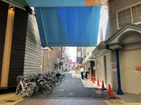 正解は、、、〒577-0057 大阪府東大阪市足代新町4付近、布施駅北西。ブランドーリふせ商店街の居酒屋「め組」を左手に西へ向かって撮影…