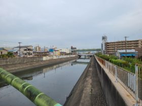 正解は、、、〒577-0063 大阪府東大阪市川俣3-3付近、第二寝屋川に架かる川俣大橋から南へ向かって撮影しました。背中側には川俣ポンプ場。…