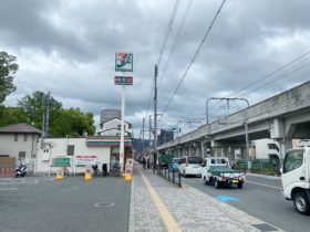 正解は、、、〒578-0947 大阪府東大阪市西岩田1-4付近、「セブンイレブン東大阪西岩田1丁目店」を正面に見て、東へ撮影しました。…