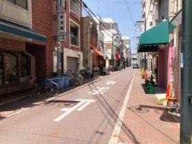 正解は、、、〒577-0802 大阪府東大阪市小阪本町1-7付近、小阪の駅前商店街「サンロード小阪」の北端から東へ向かって撮影しました。