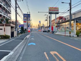正解は、、、〒577-0807 大阪府東大阪市菱屋西5-1付近。「日産レンタカー東大阪小阪店」を左手前方に見て、長瀬川沿いを北に向かって…