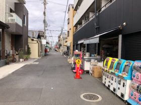 正解は、、、〒577-0841 大阪府東大阪市足代1-19付近。四条通中央商店街、パチンコ店「タウンライト布施店」を右手に西へ向かって…