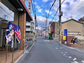 正解は、、、〒578-0946 大阪府東大阪市瓜生堂1-20付近、銭湯「宝来湯」を左手に東へ向かって撮影しました。写真右手後方には東大…