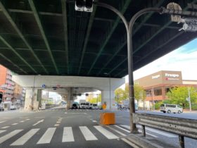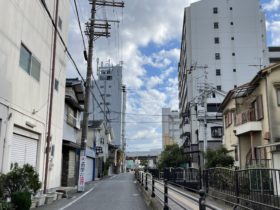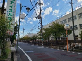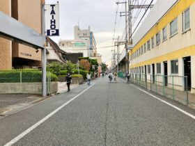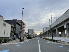 正解は、、、〒577-0807 大阪府東大阪市菱屋西5-1付近。河内小阪駅の定期駐輪場を右手に西に向かって撮影しました。写真右上の高…