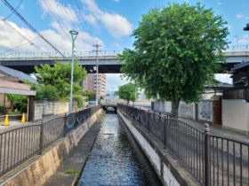 正解は、、、〒577-0821 大阪府東大阪市吉松2-5付近、長瀬川沿いを南に向かって撮影しました。