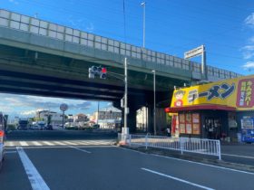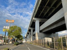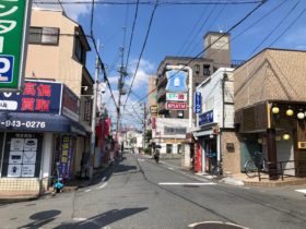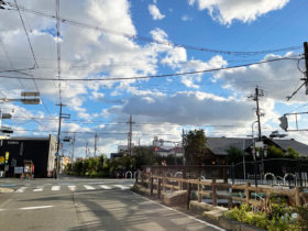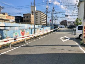 正解は、、、〒577-0801 大阪府東大阪市小阪2-1付近を西に向かって撮影しました。写真左は近鉄奈良線の高架で、八戸ノ里駅と河内小…
