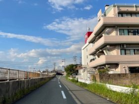 正解は、、、〒577-0807 大阪府東大阪市菱屋西3-14付近、長瀬川沿いを南に向かって撮影しました。東西に走るのは府道24号線(大…
