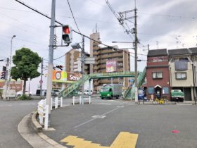正解は、、、〒577-0056 大阪府東大阪市長堂1-1付近、近鉄布施駅北東。長堂3丁目南交差点を東に向かって撮影しました。写真右上の…