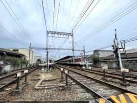 正解は、、、〒577-0816 大阪府東大阪市友井3-1付近、近鉄大阪線・弥刀駅北側の踏切を、南に向かって撮影しました。弥刀駅は2面4線の地上駅…