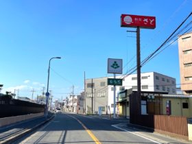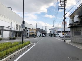 正解は、、、〒579-8046 大阪府東大阪市昭和町3付近、フルーツ・野菜ショップ果生園を右手に、東に向かって撮影。まっすぐ進むと国道17…