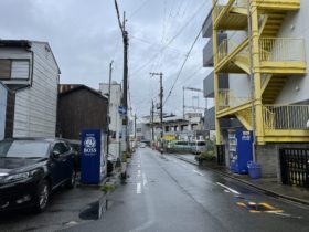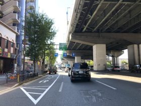 正解は、、、〒577-0801 大阪府東大阪市小阪2-19付近。近鉄奈良線の高架を左手に、東に向かって撮影しました。真っ直ぐ進むと八戸…