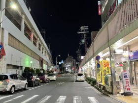 正解は、、、〒577-0807 東大阪市菱屋西1-16付近、居酒屋「浜焼きわい家」前を南に向かって撮影。右に見えるのは中華料理の「豚珍館…