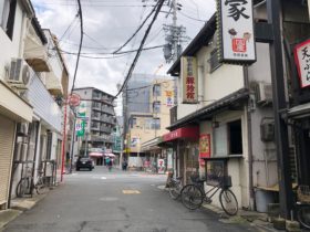 正解は、、、〒577-0002 大阪府東大阪市稲田上町1-6付近。徳庵駅の東側、たこ焼き店「てこや 徳庵駅前店」を左手に北東に向かって撮…