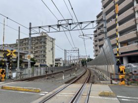 正解は、、、〒577-0063 大阪府東大阪市川俣2-6付近を北西に向かって撮影しました。JRおおさか東線の踏切で、写真奥(北西)は放…