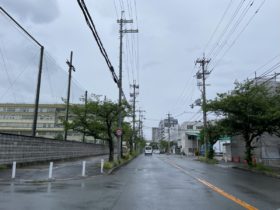 正解は、、、〒577-0818 大阪府東大阪市小若江3-6付近。「松屋近大前店」を右手に南に向かって撮影しました。東進すると近畿大学の…