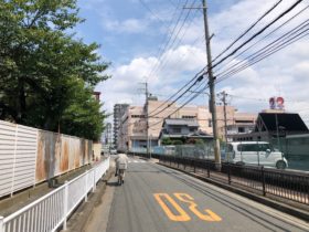 正解は、、〒579-8003 大阪府東大阪市日下町4-3付近、万代石切店前から東へ向かって撮影しました。川沿いに西へ行くと大阪外環状線。…