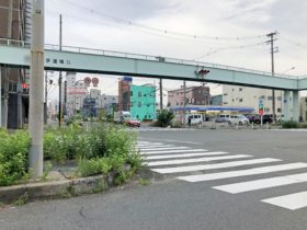 正解は、、、〒577-0005 大阪府東大阪市七軒家2付近、楠根東歩道橋の交差点を南に向かって撮影しました。東へ行けば大阪中央環状線、そ…
