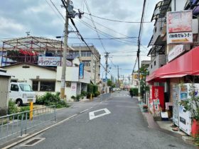正解は、、、〒577-0013 大阪府東大阪市長田中4-2付近。紙文具団地内の「卵らん亭」を左手に東に向かって撮影しました。約300m直…