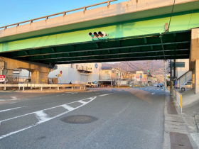 正解は、、、〒579-8014 大阪府東大阪市中石切町6付近、府道168号石切大阪線石切陸橋下交差点を東に向かって撮影しました。高架は…