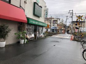 正解は、、、〒577-0002 大阪府東大阪市稲田上町1-2付近、コノミヤ徳庵店前から学研都市線の踏切に向かって撮影。徳庵駅のすぐ北側…