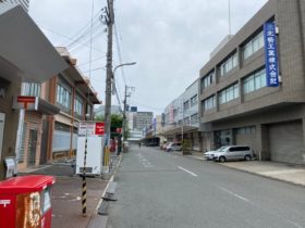 正解は、、、〒577-0815 大阪府東大阪市金物町3-6付近。金物団地にある「東大阪金物町郵便局」の前から西に向かって撮影。真後ろに…
