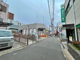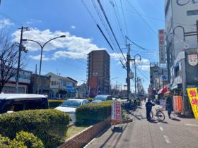 正解は、、、〒578-0937 大阪府東大阪市花園本町1-6付近。近鉄河内花園駅出口南、関西みらい銀行花園支店の前を東に向かって撮影。…
