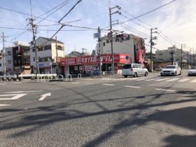 正解は、、、〒579-8058 大阪府東大阪市神田町6付近。餃子の王将瓢箪山駅前店を右手に、東に向かって撮影しました。このまま直進する…