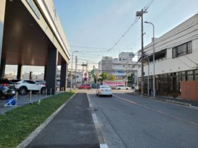 正解は、、、〒578-0984 大阪府東大阪市菱江1付近を南に向かって撮影しました。目の前の信号は河内警察署前交差点で、東…